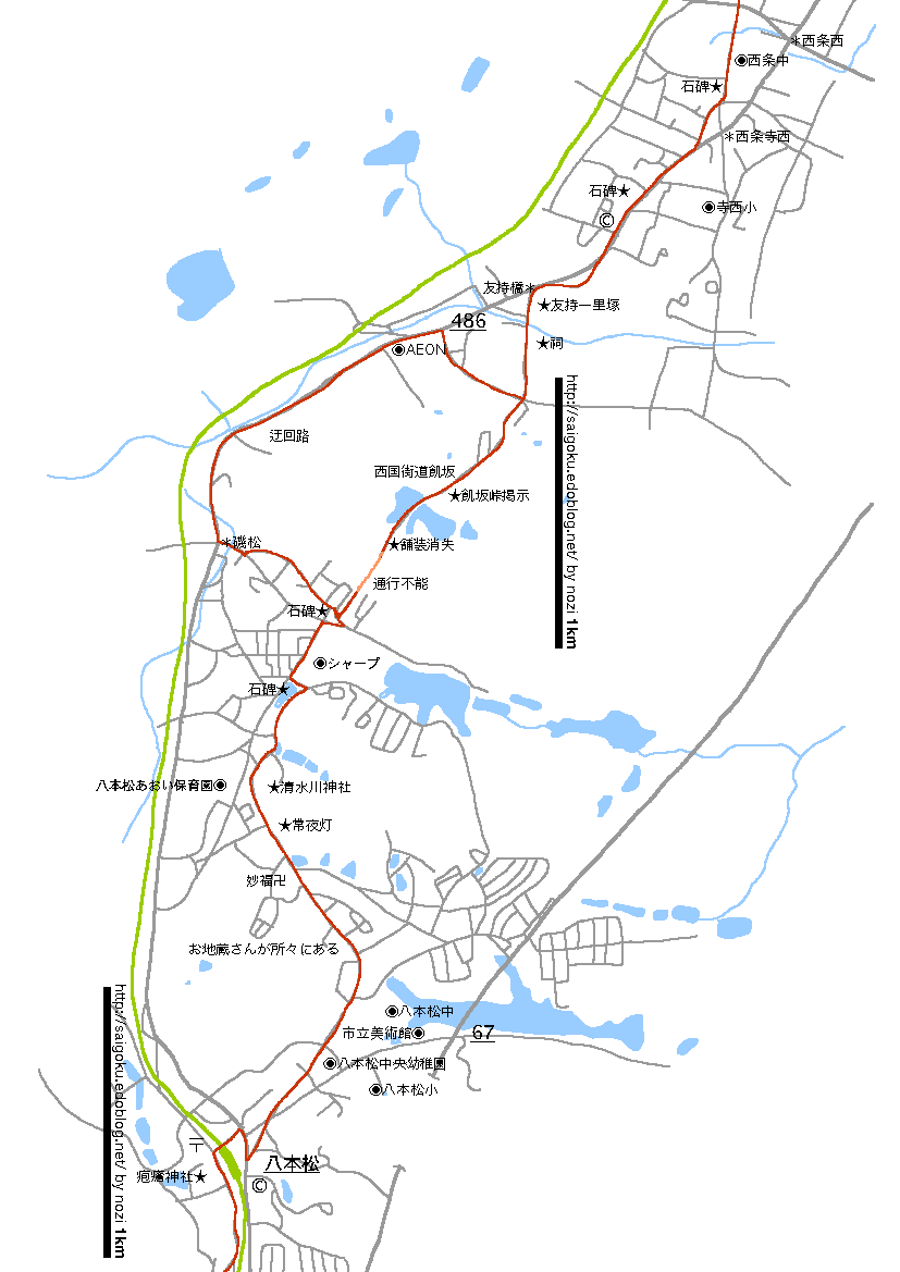 友持橋の一つ前の、AEONのある交差点から西国街道へ合流、反対側からチャレンジしてみました。