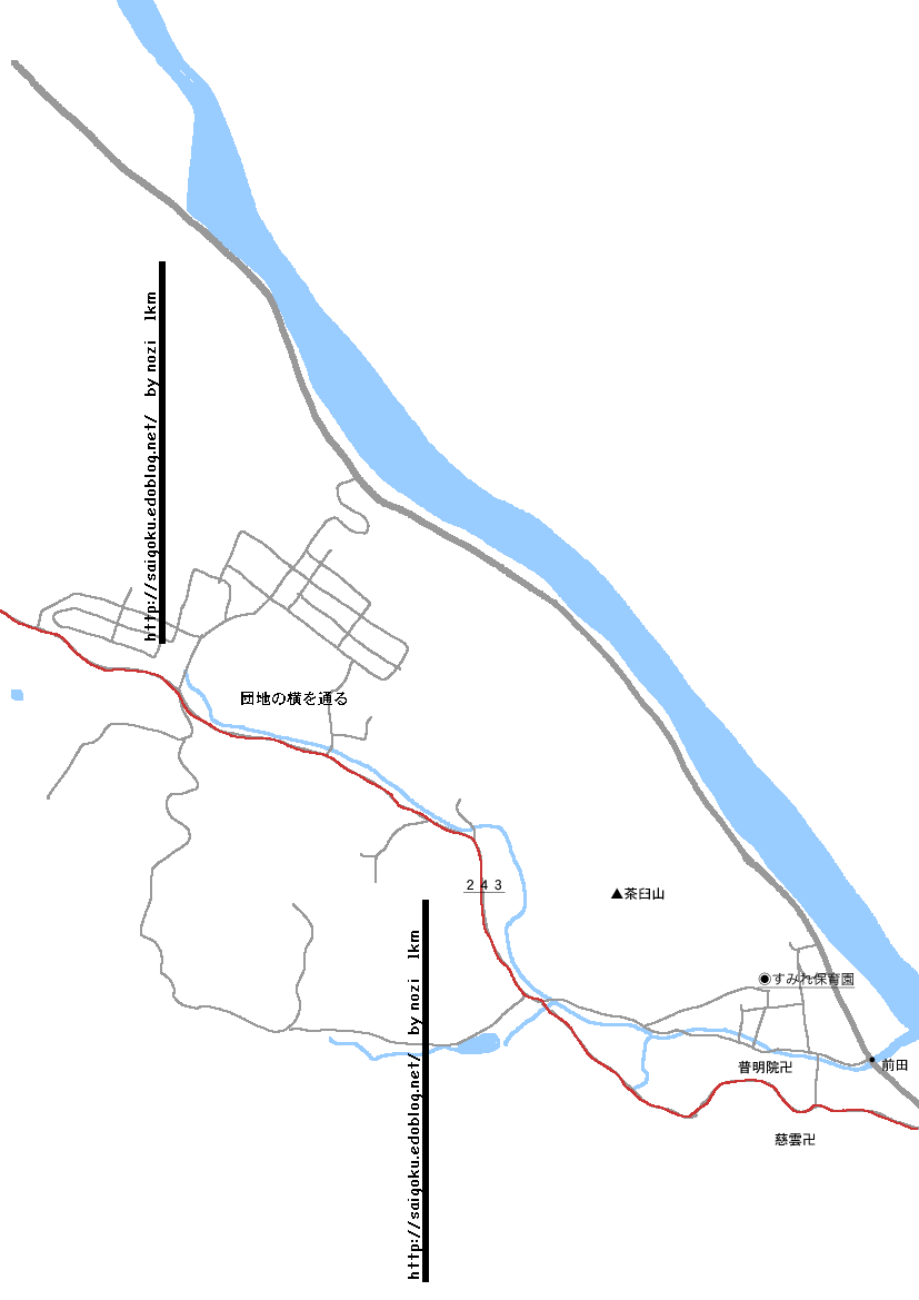茶臼山を通り過ぎると、左側に採石場があるので、ダンプがよく通ります。その先は集合団地の裏を通るように道が続くので、うら寂しいわりにこの道、車が通ってました。