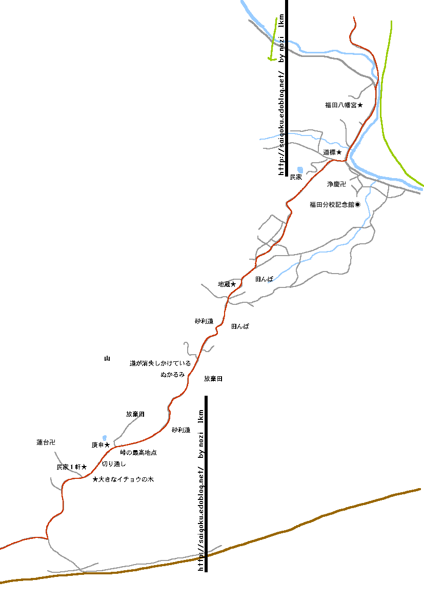 庚申から200~300mくらい?突如道が無くなります。いや、あるんですが、これは獣道じゃないかというような、そして、山側から水が流れ、ぬかるんでいます。そう、噂のぬかるみ。だいたい20mぐらいに渡って。