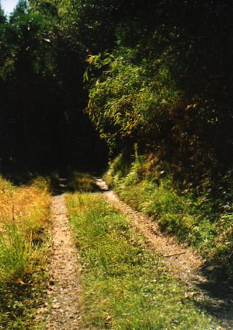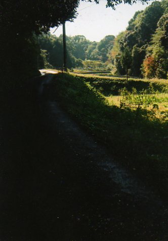 獣道区間は、50mくらいで、直ぐにまた砂利道にもどり、人の手が入っている田圃が現れます。