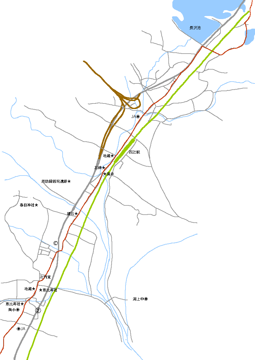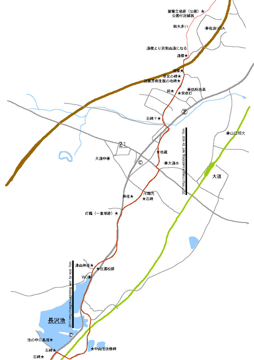 長沢池から地図の縮尺が変わります。気をつけてください。