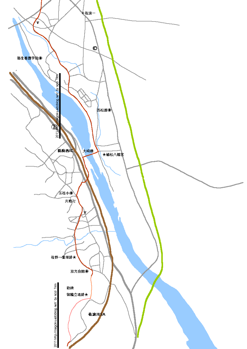 私は、サービスエリアの後ろをぐるっと迂回している路が山陽道と思っていました。ちがうんですね。その更に外側を迂回するのが山陽道なのでした。なので舗装道路だとおもってたんです。違います。