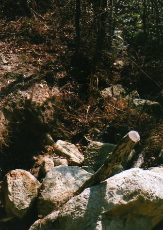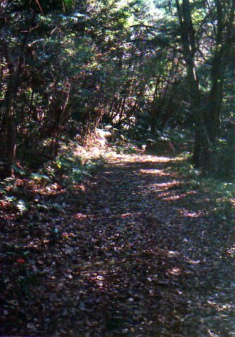 外側の本物の旧道に入る分岐にはちゃんと立て看板があり、最初は奇麗な路なんですが、だんだん悪化して行きます。途中で後悔しました。一応維持はされているので道は道なんですが、倒木はあるし沢には橋がかかってないのでジャンプしなきゃいけないし。熊や猪がいたら嫌なので、ずっと歌いながら歩いていましたが、峠を歩きながら歌うのってかなりきつい。肺活量がはんぱない。