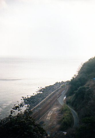 大内輝弘の墓さらにもうちょっといくと、橘坂と手掛け岩があります。ここの景色がもんの凄く奇麗なんです。さった峠だ!って真っ先に思いました。山のぎりぎりを走る線路に海に、富士山はないけど瀬戸内の島が遠くみえる。この峠を越えずとも、富海からあがって来てこれだけ見てもいいと思います。富海からならすぐです。