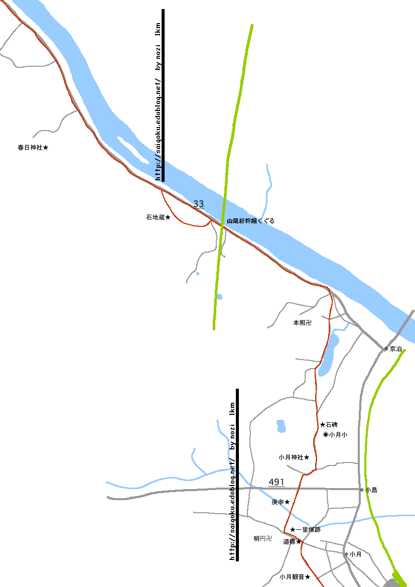 この辺は、何々でした。みたいな石碑が、ちょこちょこあります。川へ達したらあとは33号線を黙々と吉田大橋まで。