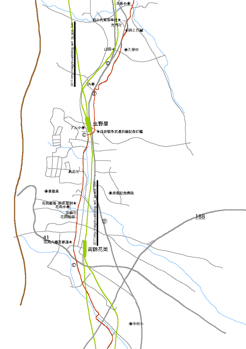 花岡は地図上でみると結構家がありそうなんですが、実際はそんなでもなく…というかこの先ずっとこんな感じです。駅は基本無人、便数は少ない。ちょっと心もとない。団地がいっぱいあるので、ベッドタウンのようですが、車つかってるんでしょうねーとどうでも良い考察。JRとコンビニは現代人の宿場です。この二つが無いと一気に旅が難しくなる。