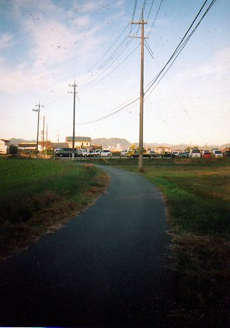長府駅をすぎて、線路を越えると、田圃の中をとおる、いい感じの道になります。