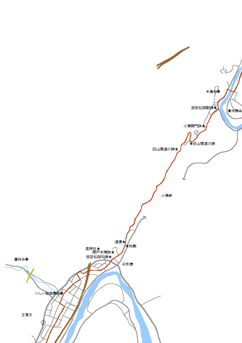 ここは、街道沿いでした、みたいな看板が立っている横に、吉田松陰歌碑「夢路にもかえらぬ関をうちこえて今を限りと渡る小瀬川」その人生について詳しくはないですが、この歌には何だかぐっとくる。今生の別れってのはどんな気持ちだろうな。