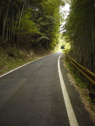 かなり長い上り坂なので、きついです。両側は竹林、薄暗い寂しい道です。所々に、逸れる獣道があって、多分本来の山陽道だと思うんですが、もう通れそうにないです。切り通しをすぎて下り、急カーブをショートカットする形で、唯一まともに道が残っている旧道があり、山陽道の碑がたっているんですが、これも通じているのかは不明です。