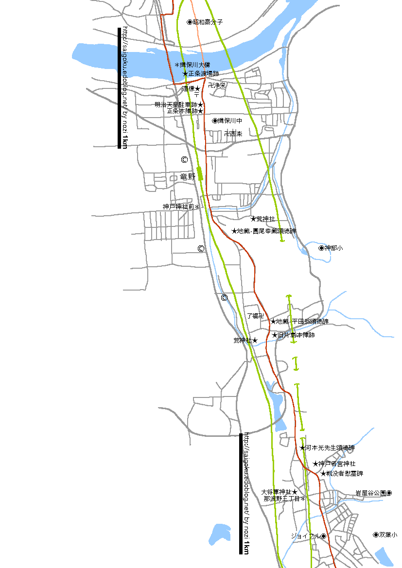 片島と正條は地図上で一枚に入るのでまとめて扱います。