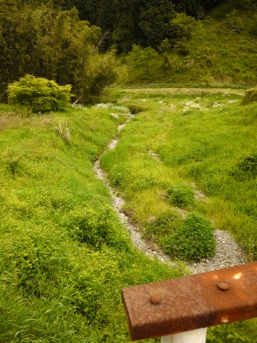 右にある川が凄く奇麗で、段々畑とかあったりして、こういう道があるから京都まであるいていけるのさと思う。行けるかどうかは分からないけど、いつも心に三条大橋。スタートでありゴールである。
